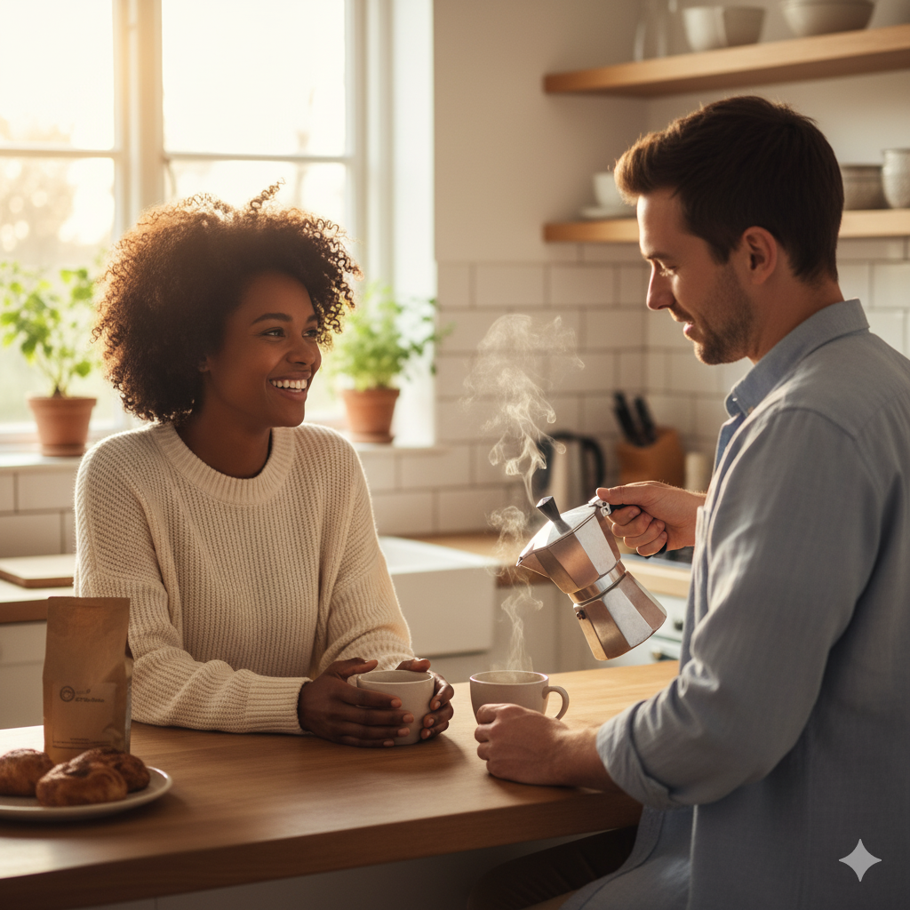 Era fim de tarde. A luz entrava suave pela janela e a conversa fluía entre risos, silêncios confortáveis e o aroma do café começando a tomar conta do ambiente. Dois amigos, dois mundos diferentes, unidos por um ritual simples: preparar uma xícara perfeita.