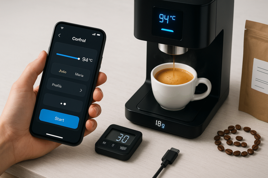 Hoje em dia, fazer café vai muito além do pó e da água quente. Com novos gadgets e aplicativos, dá pra controlar cada etapa da preparação com o toque de um dedo — seja do sofá, da cama ou até antes mesmo de sair do banho. É tecnologia a serviço do sabor.