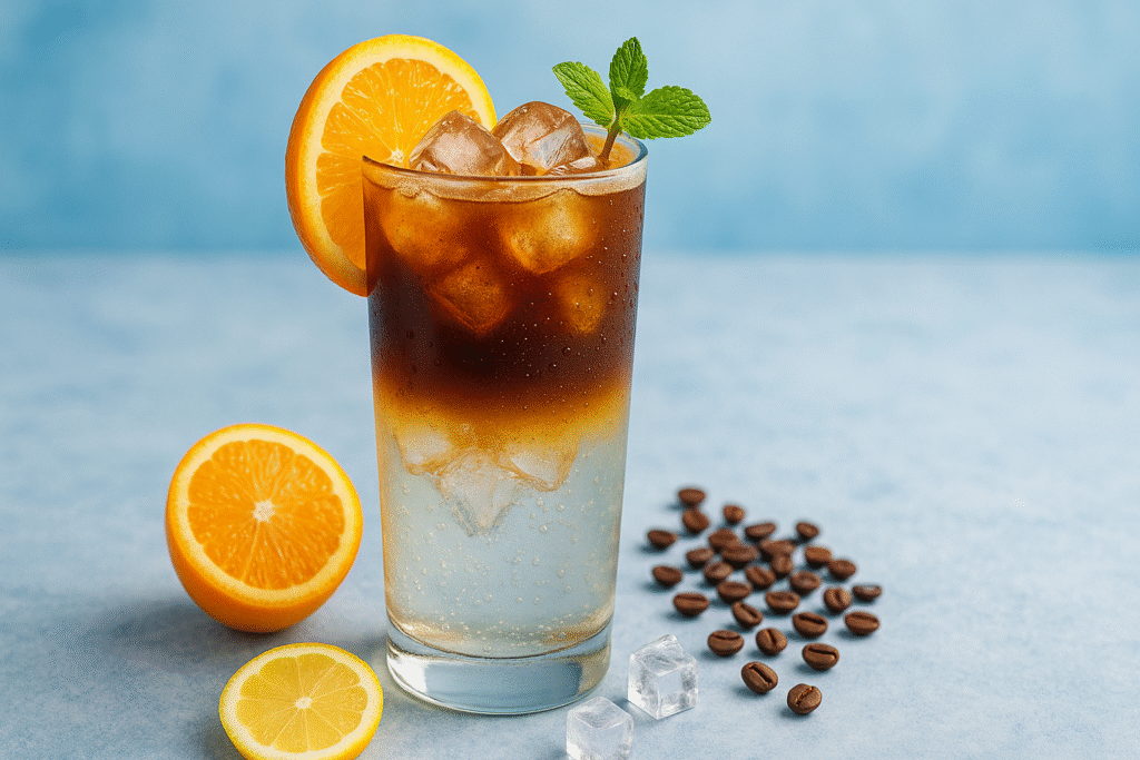 A mistura parece inusitada, mas o resultado é surpreendente. A gente tá acostumada a ver o café como algo quente e reconfortante, né? Mas, nesse caso, ele ganha uma versão leve, cítrica e super refrescante — perfeita pra dias quentes ou pra quem quer fugir do óbvio sem abrir mão da cafeína.