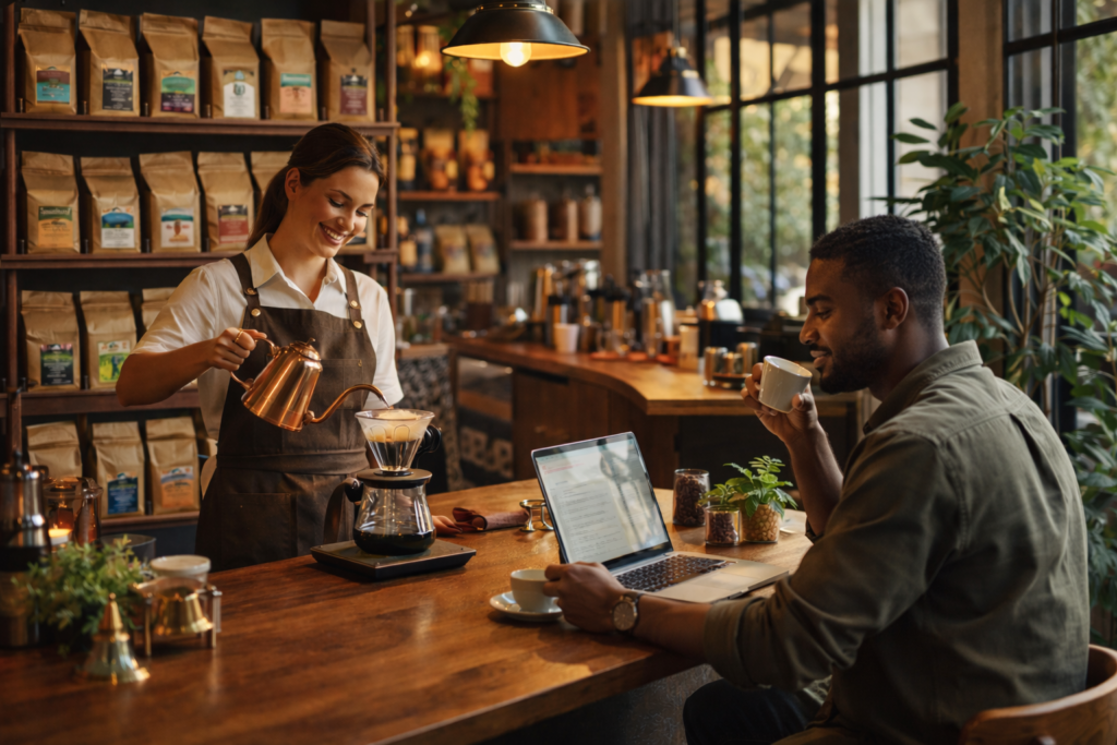 O diferencial das cafeterias premium está nos detalhes. Não é só o café que importa — é todo o contexto.