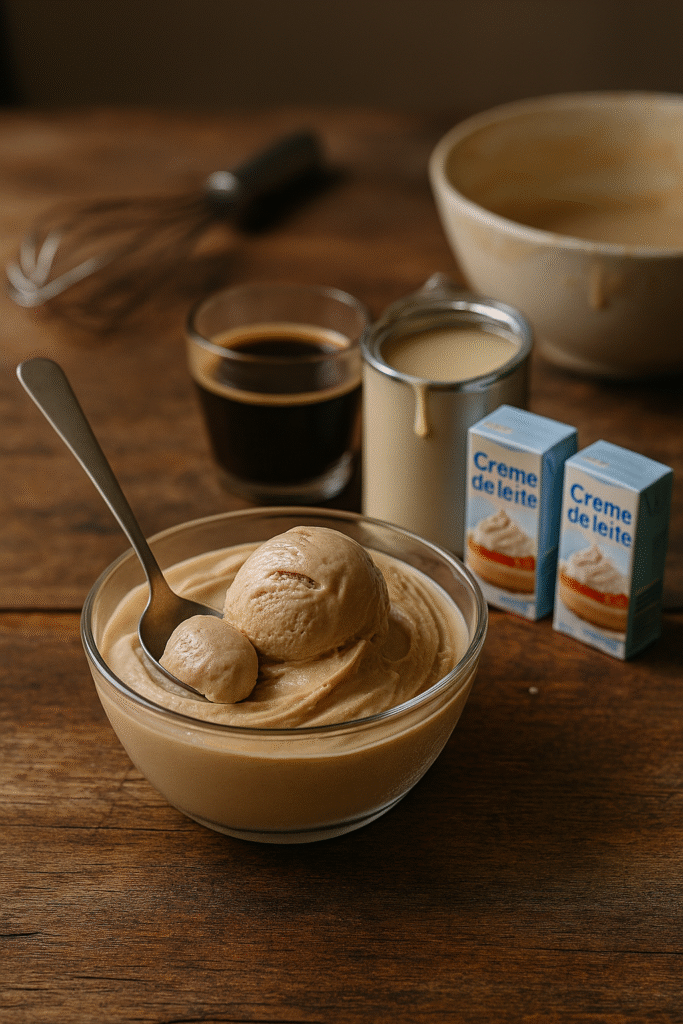 Como fazer sorvete de café com doce de leite cremoso em casa (Sem sorveteira!)